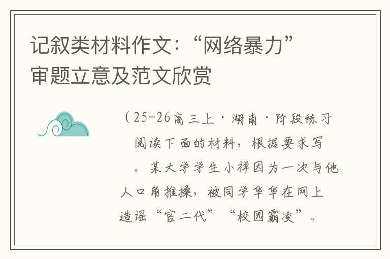 记叙类材料作文:“网络暴力”审题立意及范文欣赏