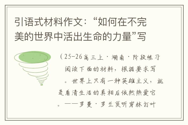引语式材料作文:“如何在不完美的世界中活出生命的力量”写作指导及范文欣赏